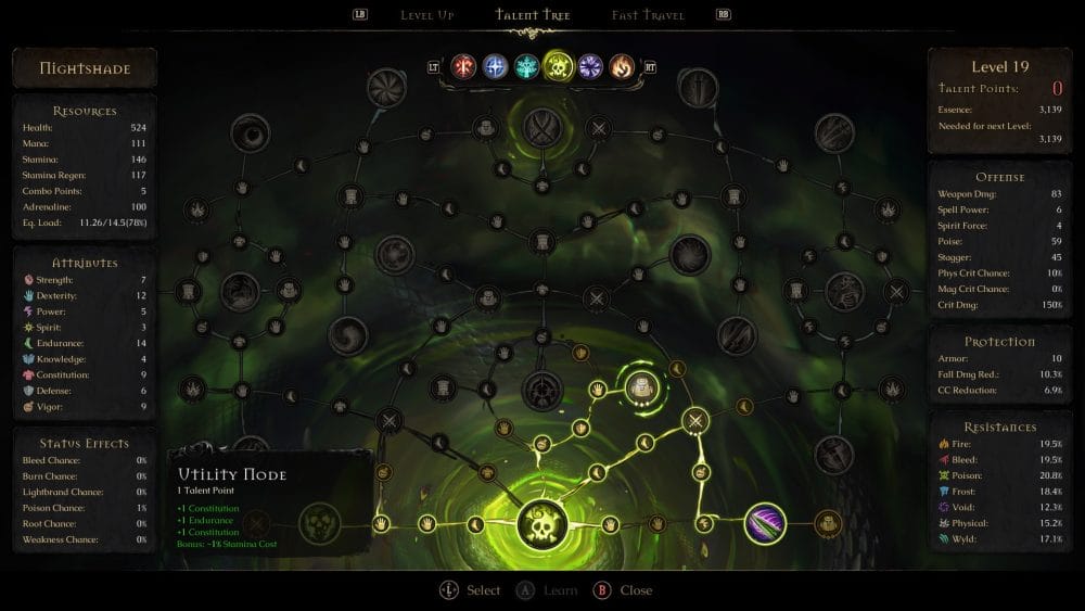 As we’re dealing with a Soulslike here, stamina management is the name of the game, and you will get locked into attack animations, so pay attention! I went with the Nightshade, an assassin that focuses on daggers and poison, so I didn’t get the chance to try out any magic, but you do unlock abilities to spice things up. You only get 2 abilities per loadout, which meant certain encounters felt a bit rote, and I don’t know if it was just a skill issue but I sometimes struggled to get my Shadowstep ability to fire despite enemies being in range and having enough Combo Points, which lead to a bit of frustration at certain points.