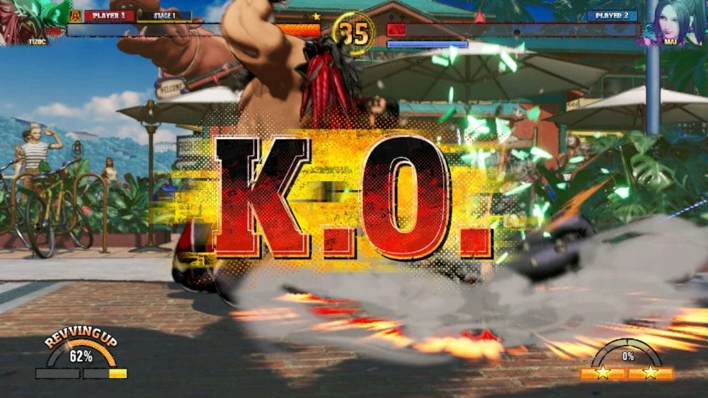 While offense is certainly powerful in COTW, the game also features plenty of strong options on defense as well. Many characters have an invincible reversal and everyone has at least one invincible super but other mechanics such as the earlier mentioned Rev blow also function as a defensive option. The just defense mechanic from Garou also returns. Just defense creates a pushblock and keeps you from taking chip damage by pressing back at the right time similar to a parry from games such as Street Fighter 3 or Samurai Shodown.