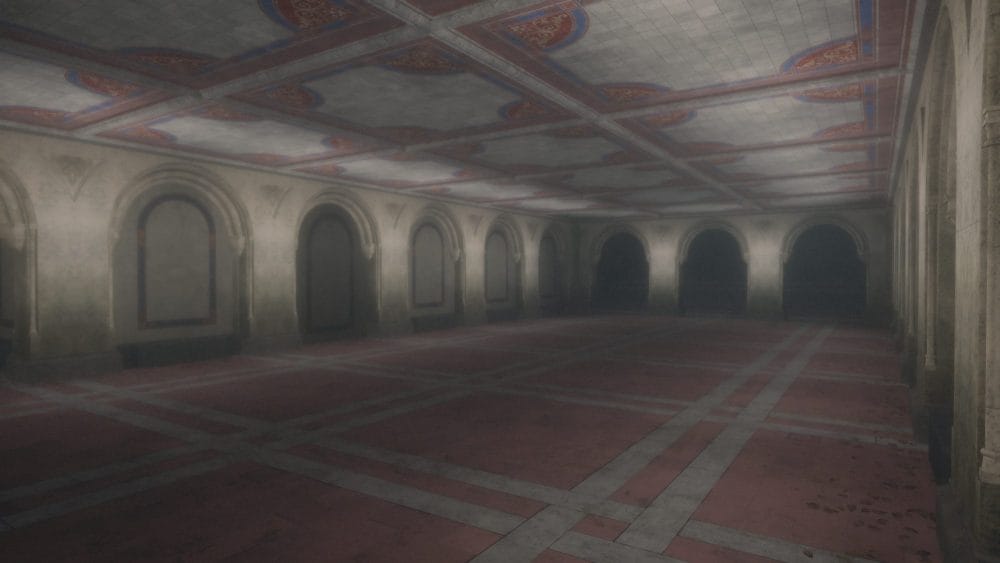 The portal can be found in this room, by walking through the darkest archway on the left here. It is a wall you can walk straight through: