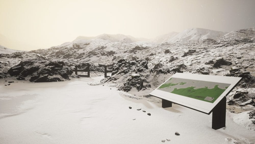 Once you have done the photos at both the daytime and dusk versions of the zone, you will enter a cave to unlock the snowy variant of Mýrdalssandur. To unlock the secret dark blue sky area, simply re-enter the cave. If you’re stuck, the cave can be found here past the gate you will have previously unlocked with a key: