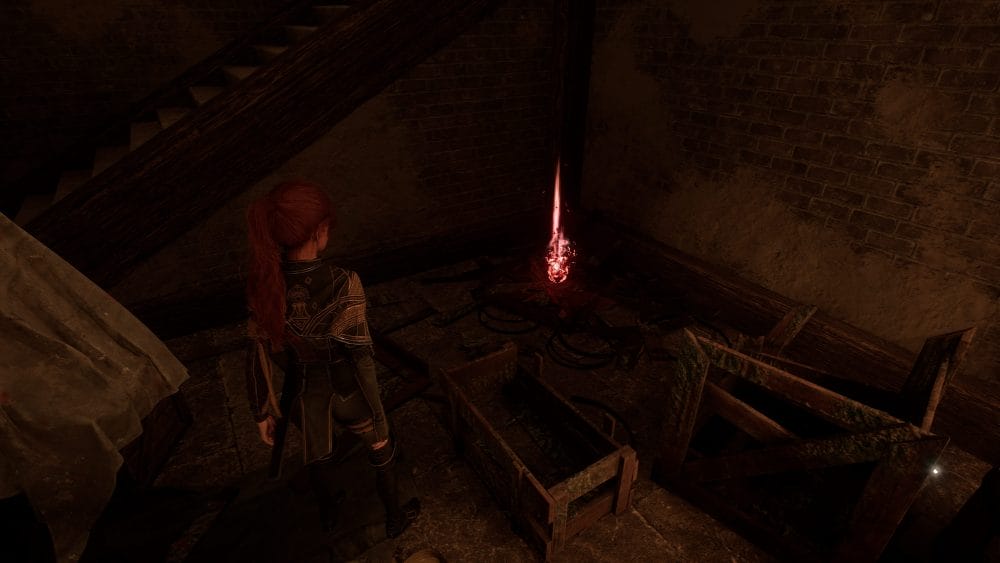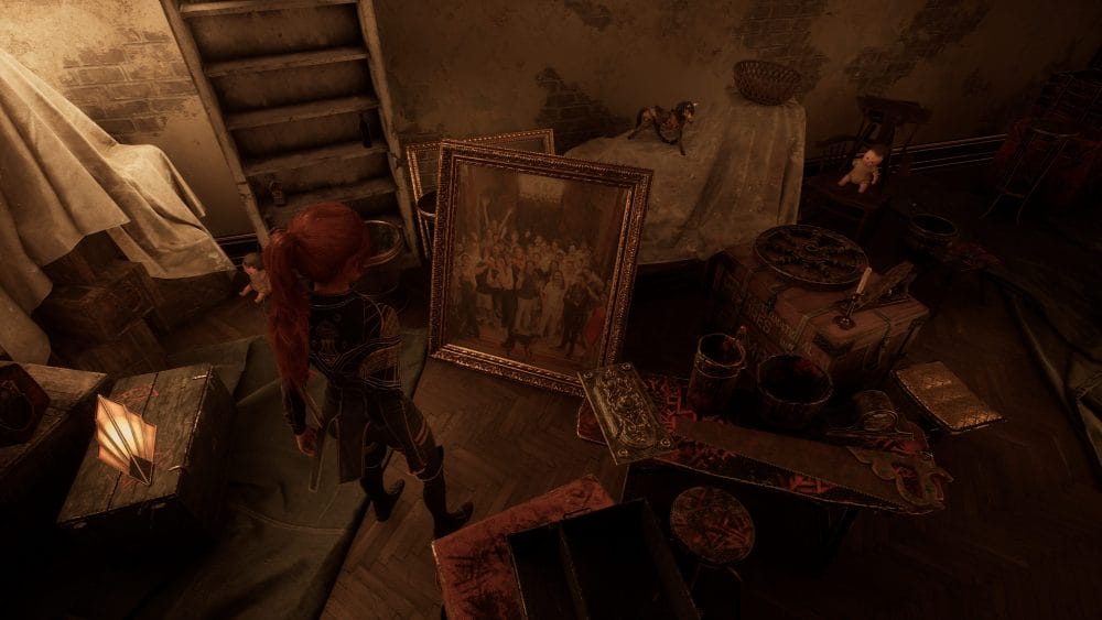 Finally, head up the stairs to find a small, cluttered room with another locked door. Sadly, this is as far as you can go for now, but there is a lovely Easter Egg of the Sandfall Interactive team, the developers behind Clair Obscur: Expedition 33!