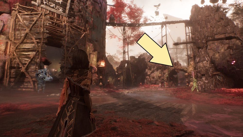 Once you arrive, walk up the path and through the entrance to the Gestral Village. Head down a path to the right, under an archway.