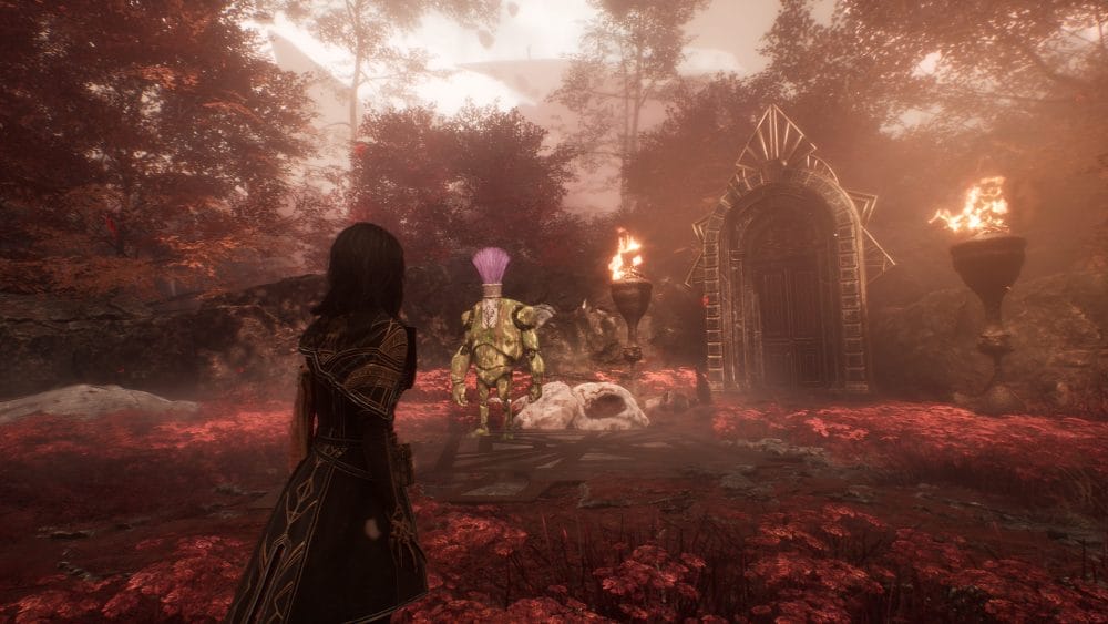 At the end of the track is a clearing with a long Gestral and another door leading to the mysterious Manor. Interact with the door.