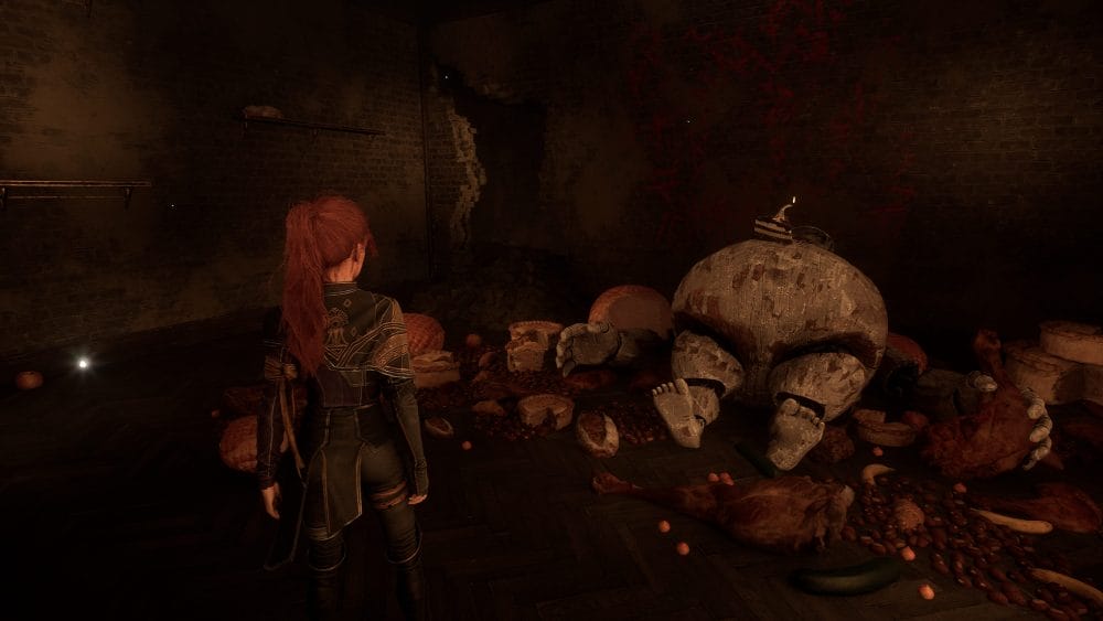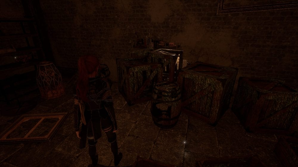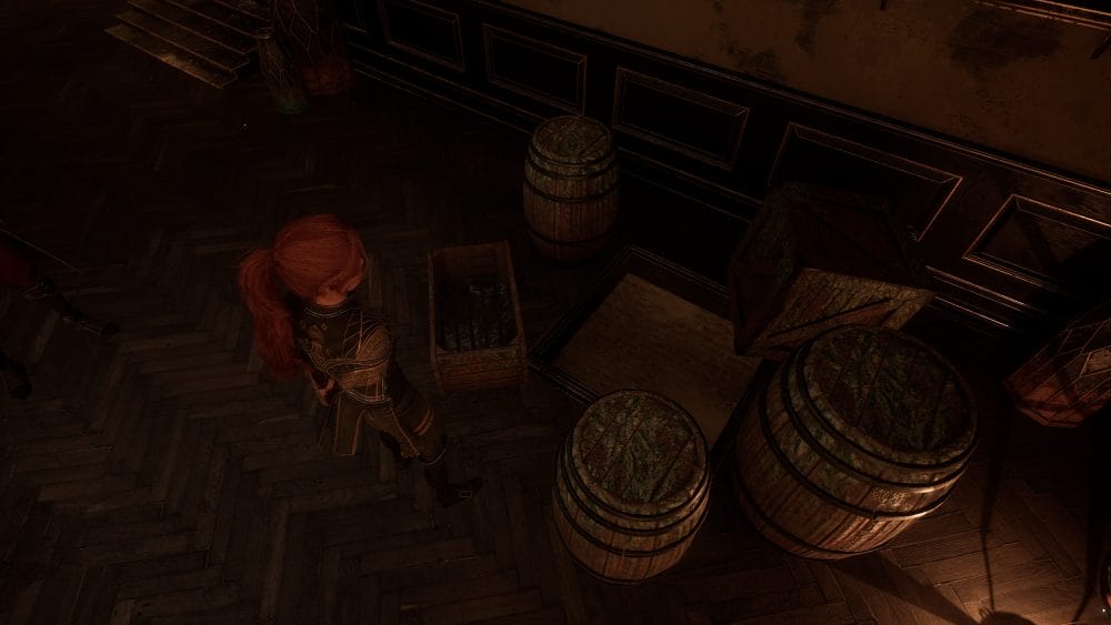 But we are not done yet! When facing the door out of the kitchen, look to the right to find a hole in the floor. Drop down into the room below.