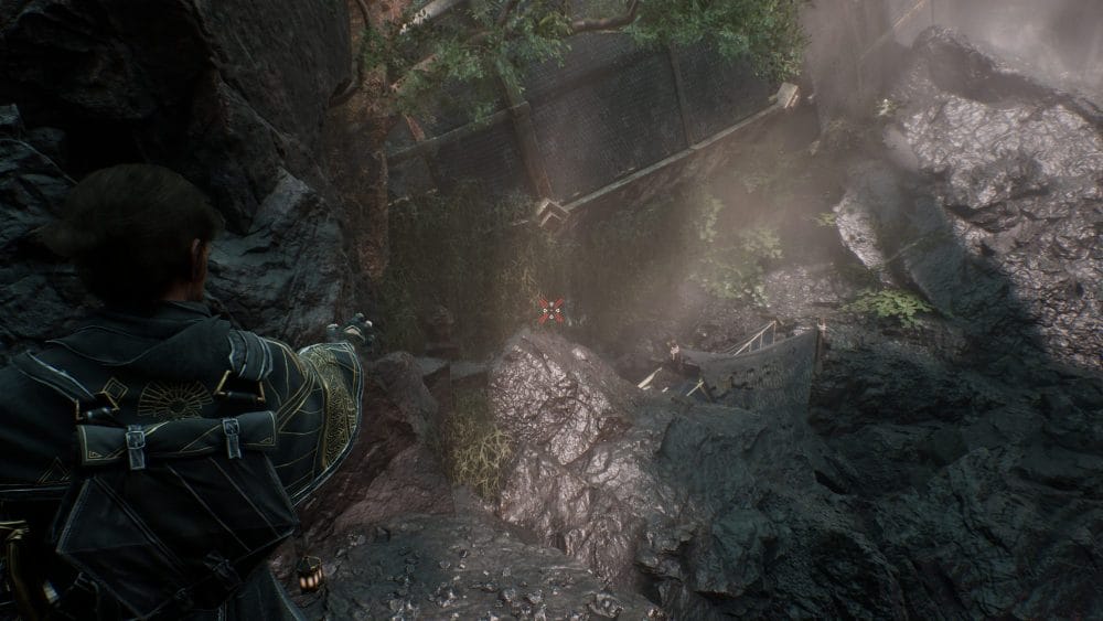 The first journal is right near the start of the level. After reaching the entrance rest point, continue along but keep yourself up against the right-hand side of the path, along the rocks. You will come to a spot that has a rope you can ascend, which you want to do. At the top of this rope will be the journal.