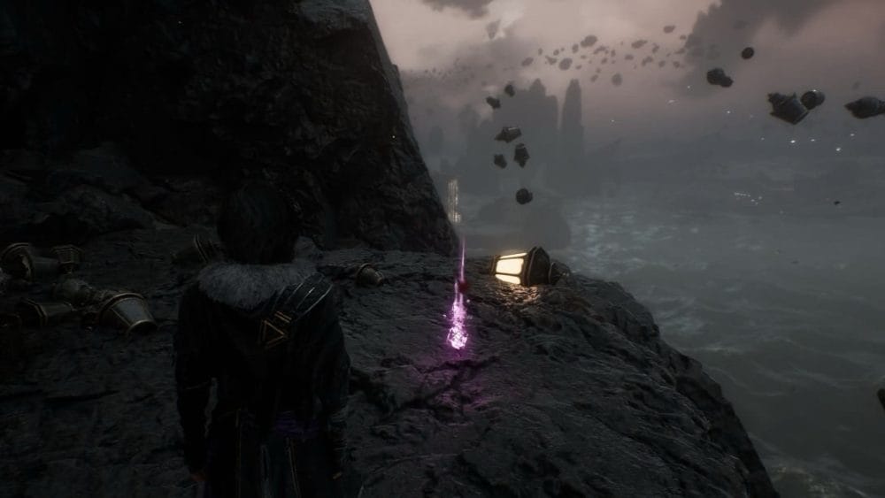 Continue from the previous journal until you get to the next rest point. You will see a shipwreck down below, which is the main path for the level anyway. Head down there and keep to the left as you do, and you will see the next journal near what appears to be 2 people that have turned to stone.