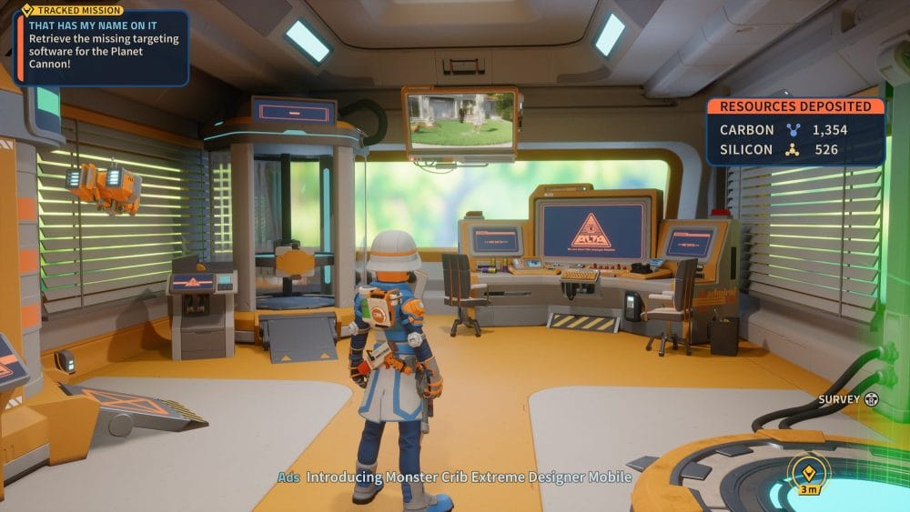 You can tell what type of resource you are mining by the colour within the rock (ie gold, green). Keep an eye on your stock back at your habitat so you can see what you need more of, but in the early stages of the game you will want to mine everything. Speaking of, there is one thing that will really help you find these spots to mine….