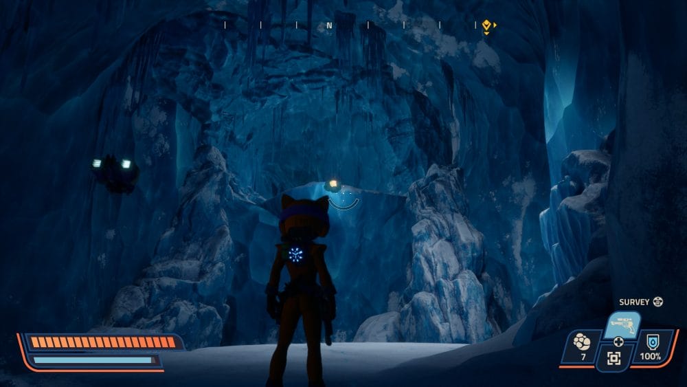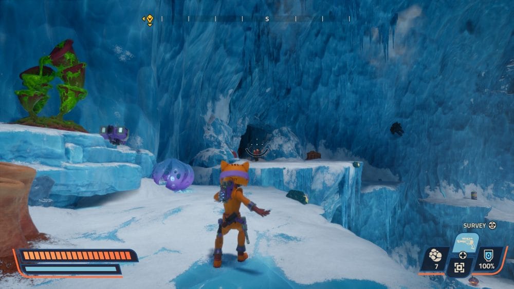 Starting from the Crash Site on Zenithian Rift, head straight forward and into the ice cave.