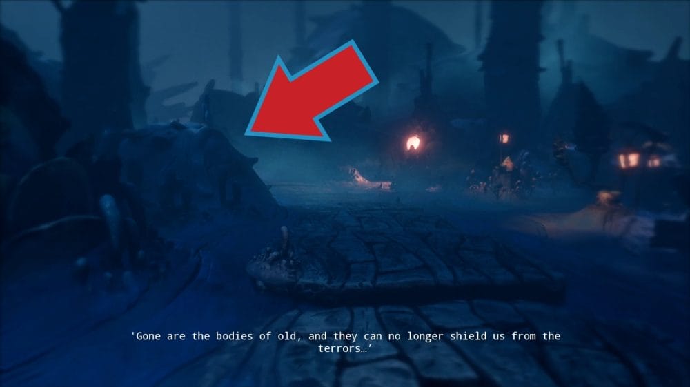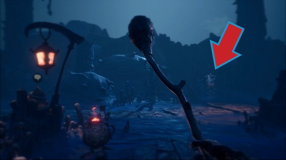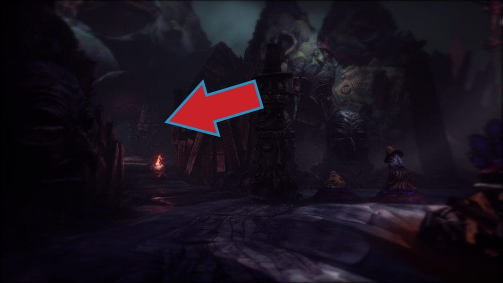 The next collectible is situated next to the Soulfisher, the fella sleeping by a campfire.