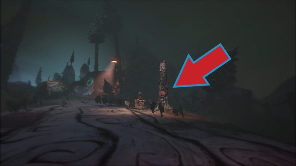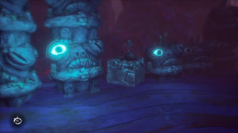 Make your way to the dancing ritual area, encircled by one-eyed toad statues.