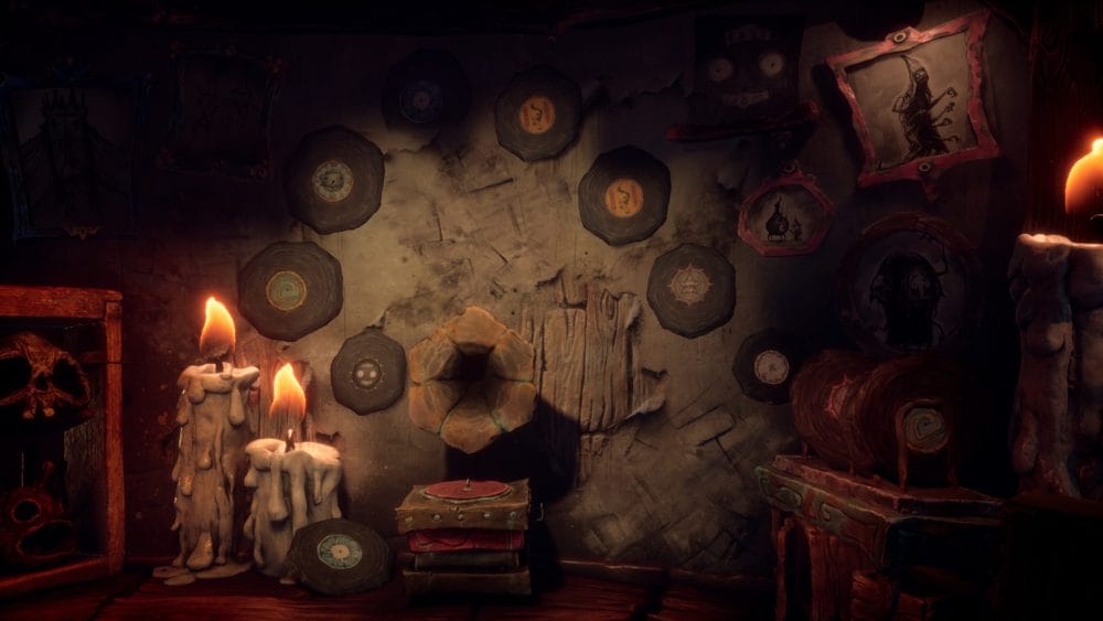 Housy is a bit like the T.A.R.D.I.S. from Dr. Who; bigger on the inside. Have Potboy light up the room and you can peruse the different collectables you have found, like music records…
