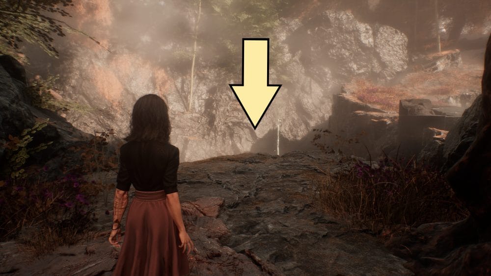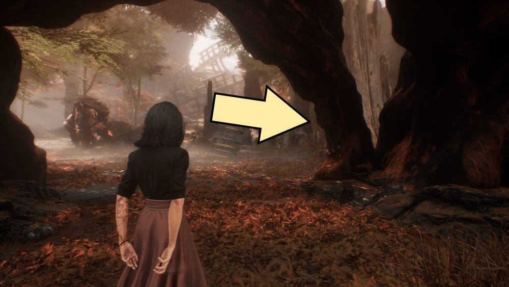 Venture forward until you reach a natural archway with a large enemy lumbering around. You want to head to the right past the archway.