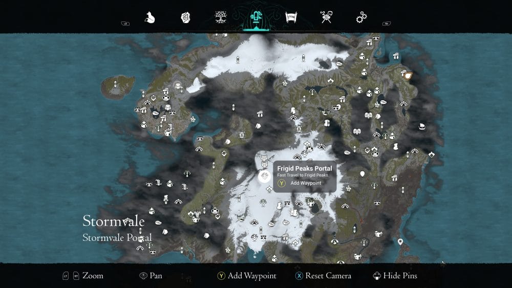 This portal is near the beginning of the area, towards the top left of the Frigid Peaks.