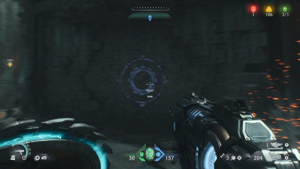 Progress to a room with a large spiral staircase. I recommend clearing the enemies at the bottom and top of the area before doing this. Once cleared head to the bottom and go in behind the staircase where you will see a breakable wall.