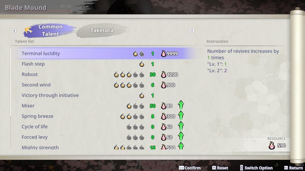 Taketora is quite strong but after playing with Sara’s speed, it was hard to readjust. Taketora fights with a bow and arrow or uses a melee attack when he is up close and personal. The bow and arrow is a bit faster, but the melee feels very slow. It’s not clunky, which is kudos to the team, but it definitely is quite slow to get used to.