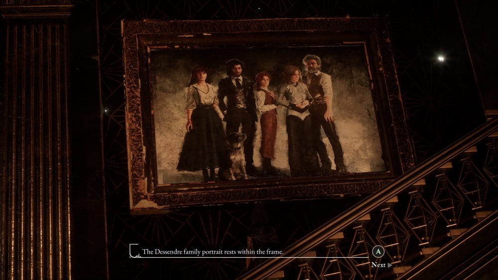 In the entrance hall of the manor, above the right set of stairs, is an empty frame which you can interact with.