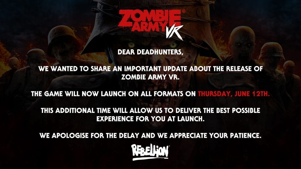 In a post published across their social media accounts, the studio behind this year’s Sniper Elite: Resistance and Atomfall has announced that their VR exclusive title will not come out this Thursday, 22nd May. Zombie Army VR will now be released on Thursday, June 12th.