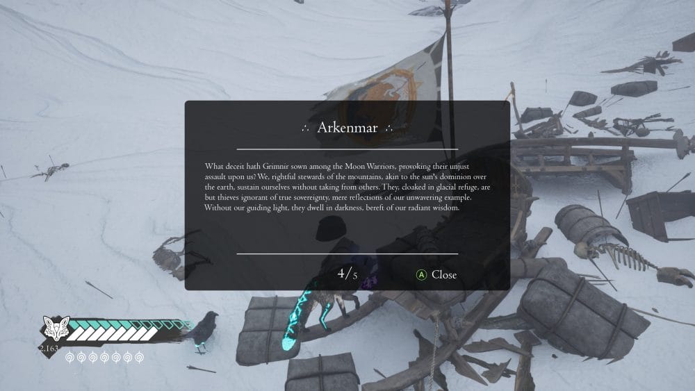 Much of the game’s story and lore is told through a whole load of collectibles scattered throughout the land. You’ll unlock an achievement for finding 20, 45, and 89 of the collectible scrolls.