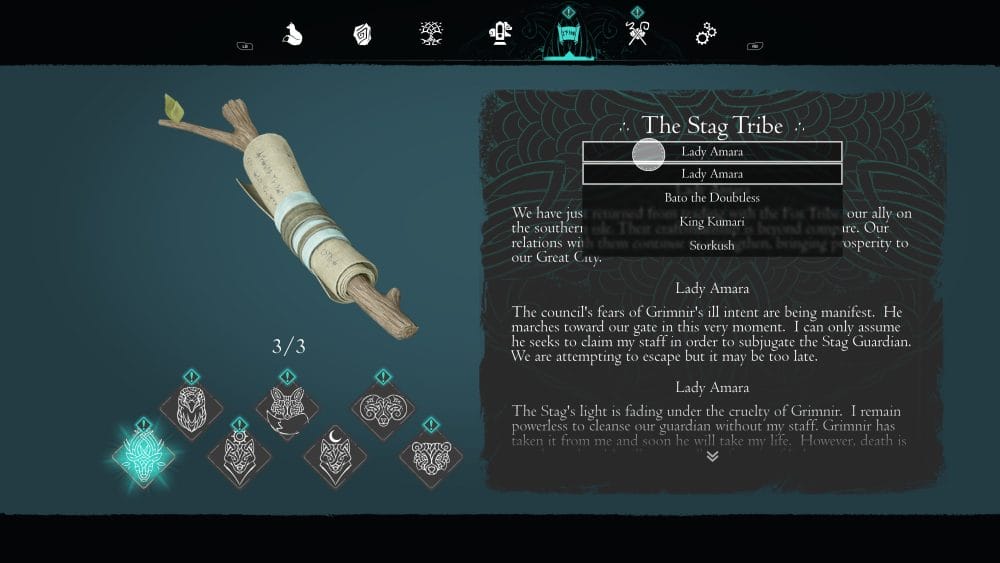 You can then select them to bring up a drop-down menu of the collectibles under that tribe (this is never explained and easily missed). See the image below for an example.
