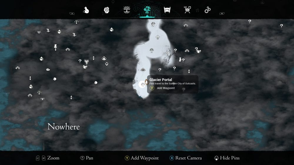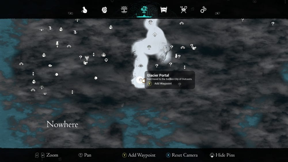 You will arrive at the Sunken City of Outcasts as a matter of progress through the Thal’dulian Glacier. You should arrive in a large long room, with a wolf staute in the middle, filled with water. You need to get to the top level, on the back left to find the scroll. You can head here from the Glacier portal, too (head up the left stairs from the portal to re-enter this space).