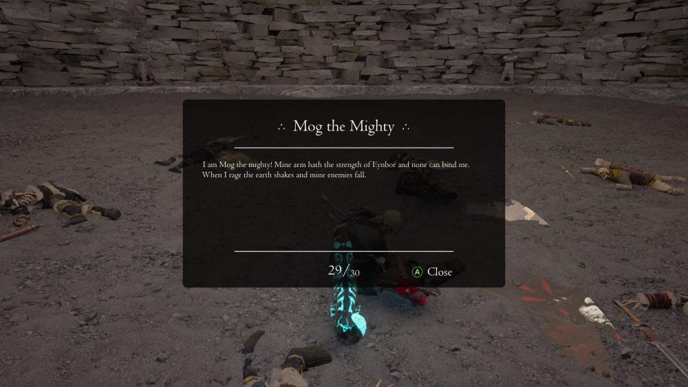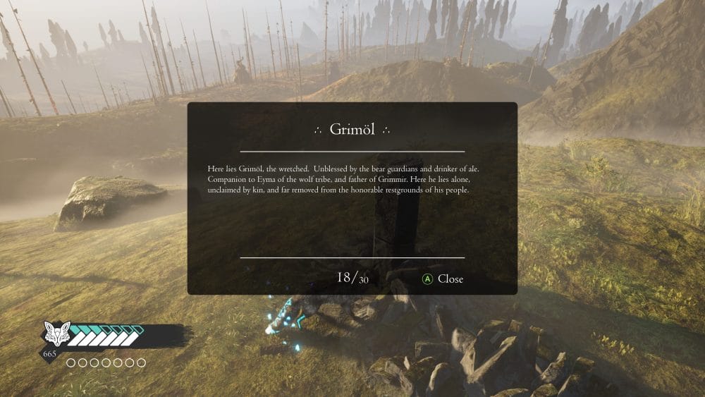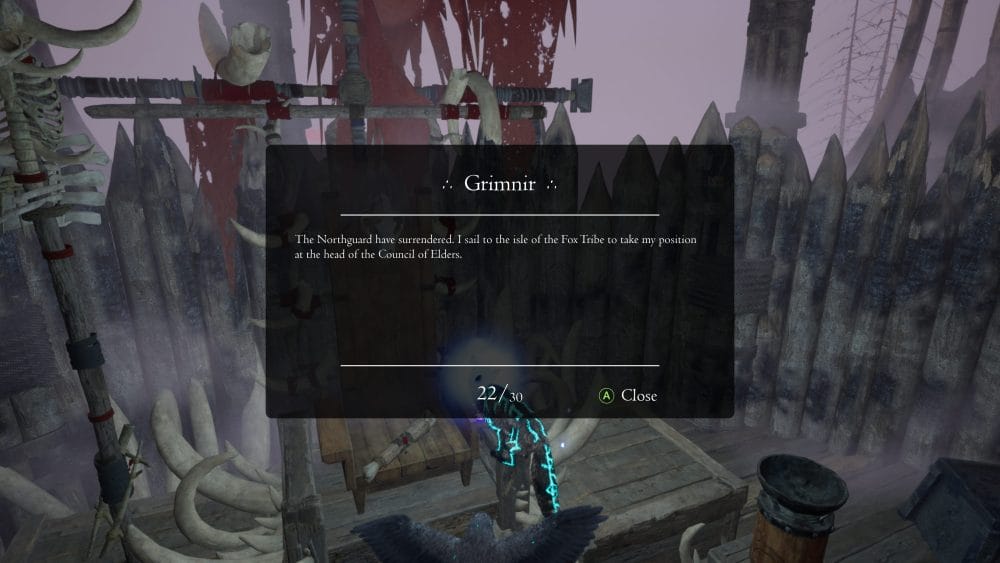 Much of the game’s story and lore is told through a whole load of collectibles scattered throughout the land. You’ll unlock an achievement for finding 20, 45, and 89 of the collectible scrolls.