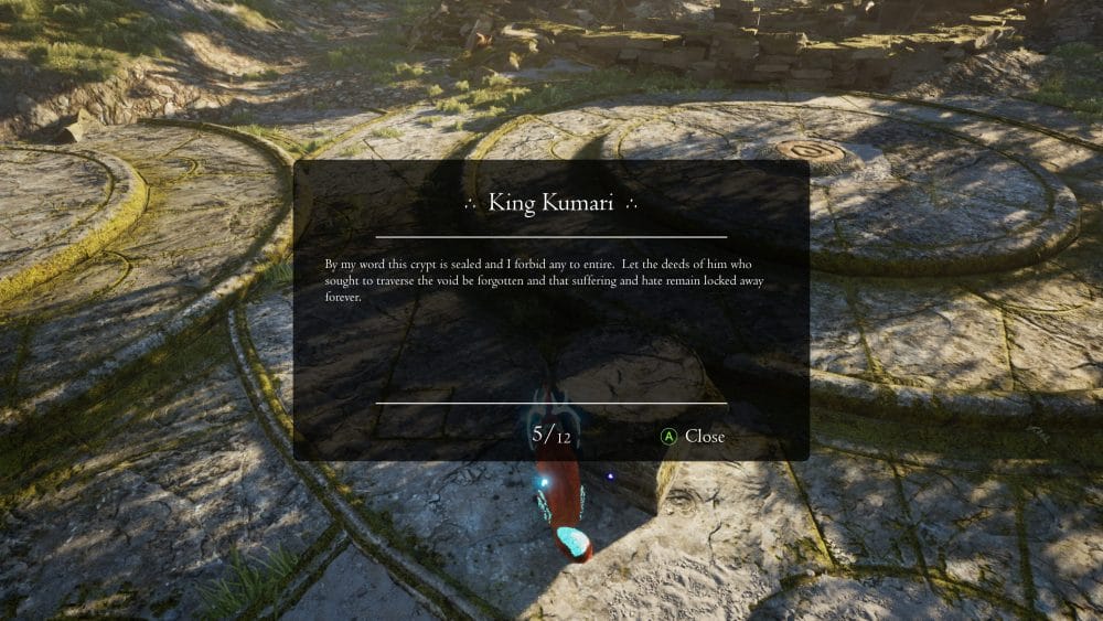 Much of the game’s story and lore is told through a whole load of collectibles scattered throughout the land. You’ll unlock an achievement for finding 20, 45, and 89 of the collectible scrolls.