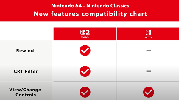 Some of these features will be exclusive to Nintendo Switch 2, with rewind and the CRT toggle exclusive to the upcoming hardware. Customisable controls will be available for both Switch and Switch 2