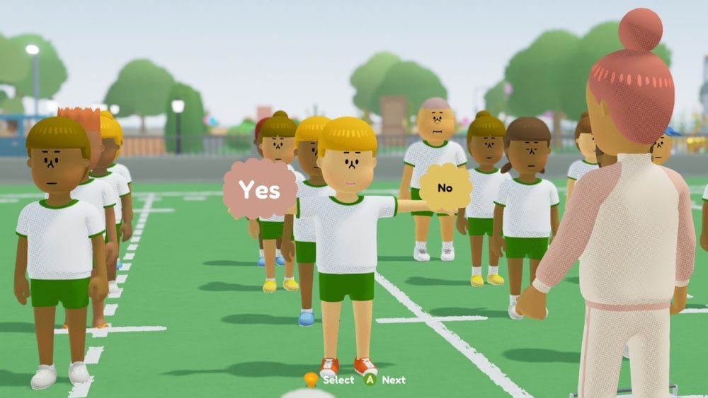 Therefore you have to closely follow the PE teacher's commands which she shouts out.