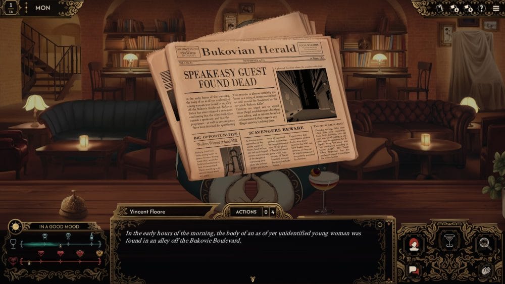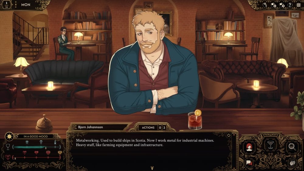 You can only serve each customer one drink per night – so if you’ll need to balance out gaining friendship (which is easiest by serving them their favourite) and getting them the right amount of buzzed to get as much information as possible. As with in real life, people will generally be in a better mood after a good drink so make sure you get them relaxed before potentially accusing them of murder.