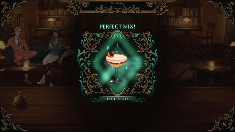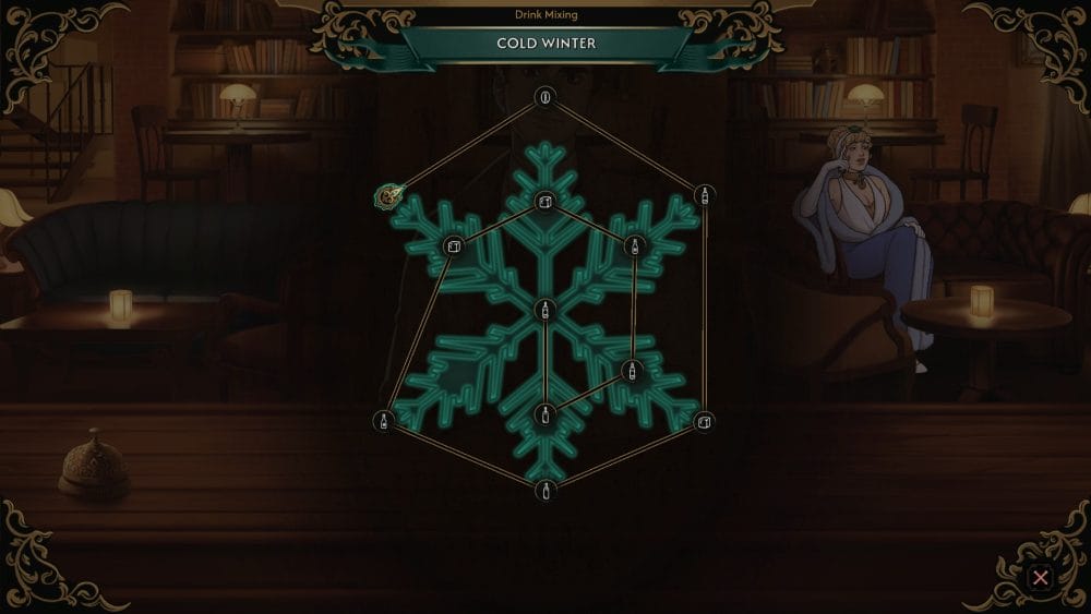 The gameplay revolves around the player’s role as a bartender at The Nightcap, an underground speakeasy where patrons come to drink, talk, and occasionally reveal more than they intend. Unlike traditional detective games that rely on direct interrogation or puzzle-solving, Best Served Cold introduces a dynamic system where players must mix drinks to influence conversations. Each customer has their own preferences, tolerances, and moods, which affect how much information they are willing to share. Serving the right drink at the right time can loosen tongues, while a poorly mixed cocktail might shut down a conversation entirely. In theory this system sounds super interesting, however I think it was maybe a little too easy. You drag an arrow around a specific shape, and as long as you stay ahead of the red arrow you’re golden. And I was. For the whole game.