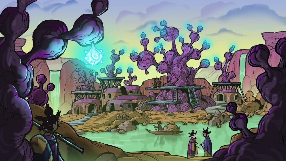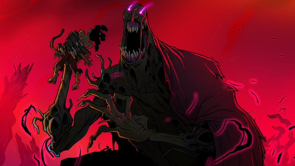 Like Drinkbox Studios’ previous titles, Blighted has a striking visual appearance, albeit this time set in a much darker world, and a grimmer premise. It was tradition that the dead were buried with a seed embedded in their brains. These seeds would grow into trees that would, in turn, produce fruit imbued with the memories of the dead. People would eat the fruit, and the knowledge of past generations lived on. That was until one called Sorcisto defiled the ritual, eating raw brains to gain vast knowledge and power. They went on to consume the player’s entire village and spread a deadly Blight across the world.