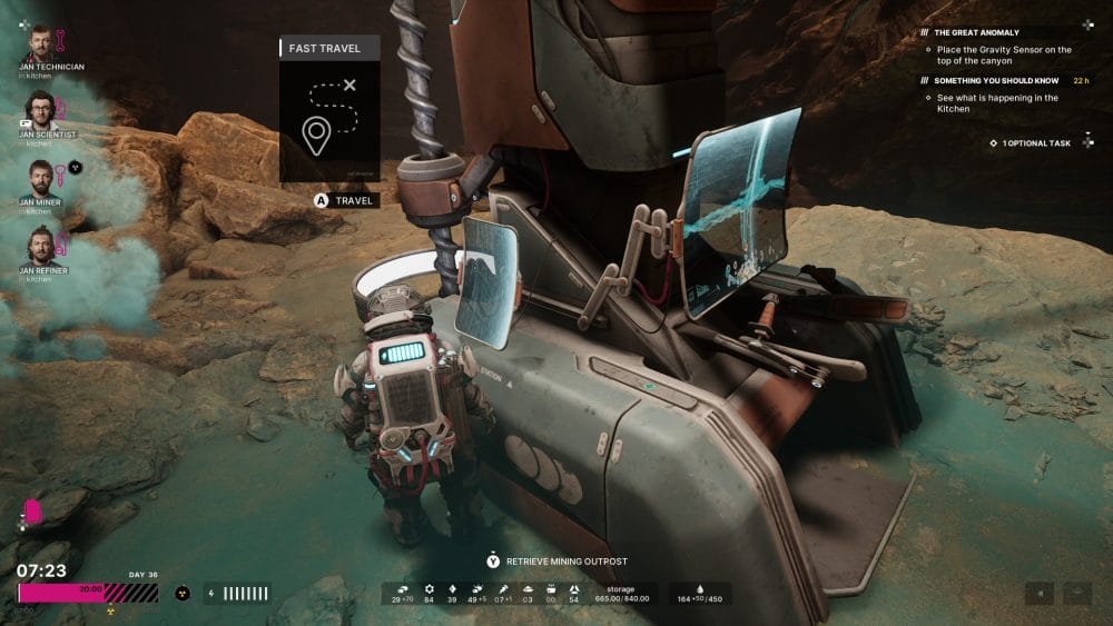 Fast travel is also important so you don’t die of radiation poisoning. Working in the enriched metals areas will increase radiation, and so will working later when the sun is nearby, or working outside during a magnetic storm. Keep an eye on your levels!