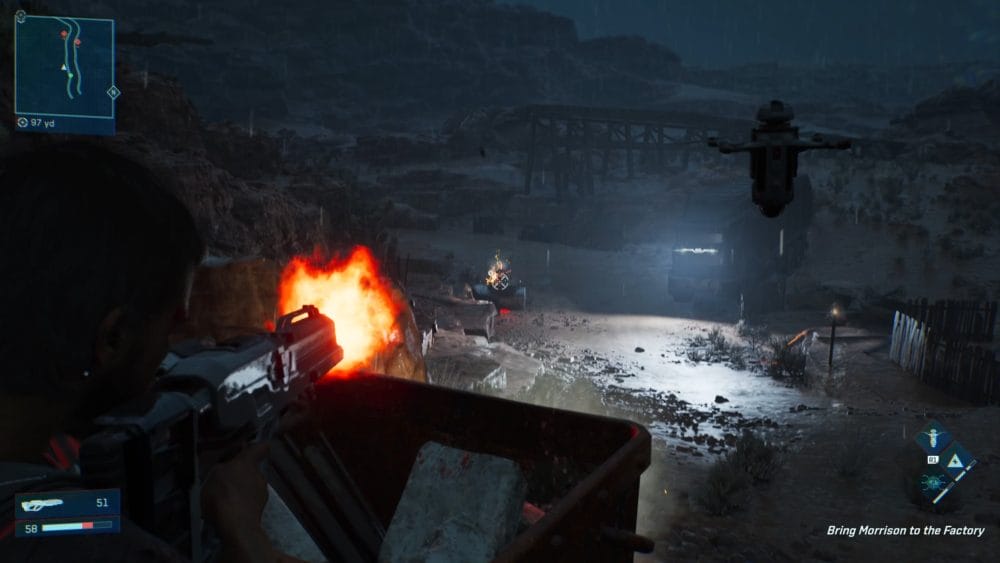 The gameplay isn't awful by any means, but it is as barebones as I could have ever imagined. First off, there is glaring lack of basic gameplay aspects that I thought would be present in a game of this genre. Things such as the option to shoot out of your car, (unless it's one of the many on the rails sections) and even the ability to melee seem completely absent. The gunplay itself is very basic and most gunfights are dumbed down to mowing down dozens, if not hundreds of enemies that all look and act the same. This leads to your first mission's gunfight feeling more or less the same as your final mission’s. There is barely any enemy variety past the usual robots and soldiers you've seen a hundred times. There is a new type of enemy that appears in the later stage of the game, but these newer enhanced robots function the same as the base one but with the added bonus of having about double the health and three times the aim. The gunplay isn't going to blow your socks off, but it's so bare that again, it almost felt like I was playing a game from the early 2000's, not one made in the past five years.