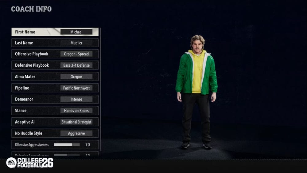 Another new feature in College Football 26, we will be able to customize our coach’s demeanor and stance. You can one of those cool, calm and collected coaches or wear your emotions on your sleeve or lack thereof. Which ever one you decide, will influence your coach’s stance and how he acts throughout the game. This gives your coach even more personality on the field.