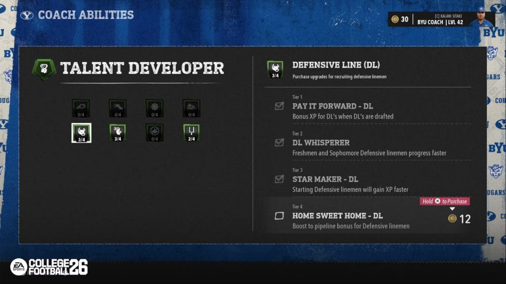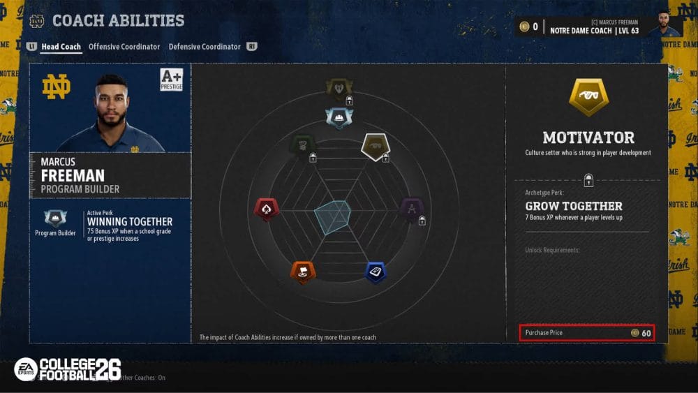 Archetype perks now heavily influence XP gains and are tier‑scaled. Base archetypes like Recruiter, Motivator and Tactician will differ from the higher tiers like Elite, Hybrid, Program Builder/CEO. The higher tiers will deliver increasingly more significant gains like CEO’s “Big Game Bonus†and Talent Developer’s “Draft Dividends†are prime examples. It will also be required to unlock certain archetypes by meeting the level thresholds. EA also rebalanced abilities added new skills and adjusted the cost of said skills. Everything from your staff hire, archetype and perk will now play a critical role in shaping your coach’s development.