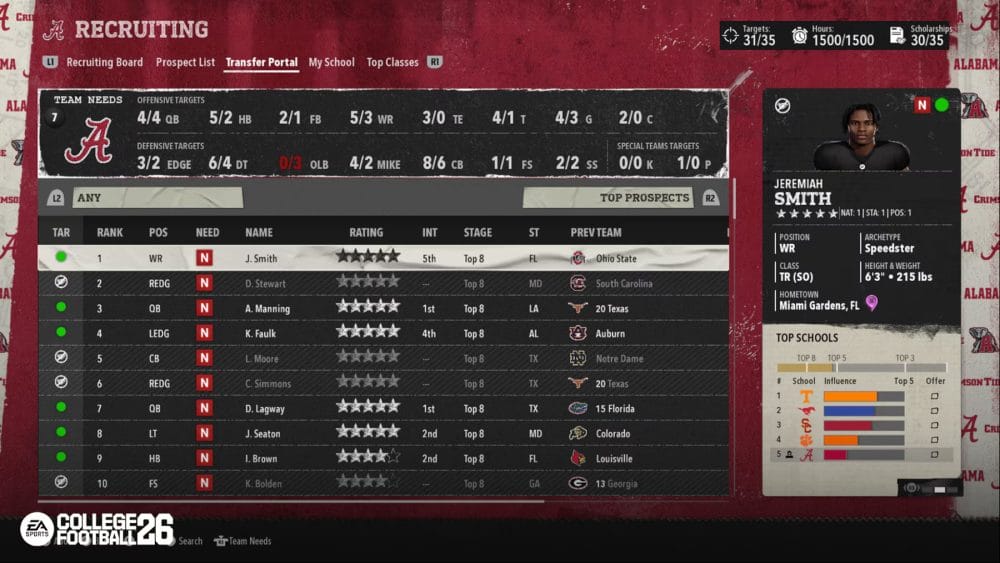You can’t have a successful program without recruits, whether they come from high school or the portal. College Football 26 is pushing to capture the essence and chaos of roster movement in this era. With that we can expect to see a consistent pool of around 2,000 players entering the portal. We have the choice to focus on building our program through the portal, developing high school prospects or a mix of both. The success of your program depends on how well you can manage an everchanging roster.
