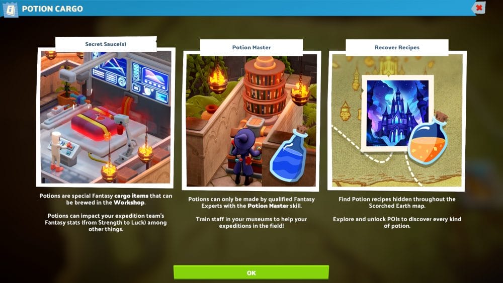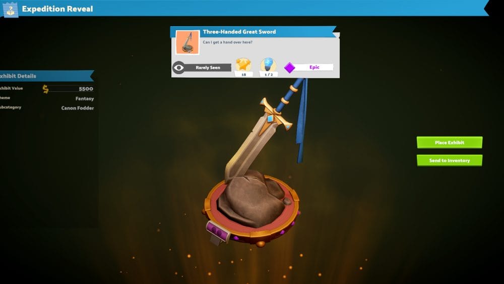 Fantasy Finds is a new expedition map ready for you to dive into as soon as you’ve completed the first part of the tutorial. I would recommend getting to grips with standard Museum management first, as in order to unlock a lot of it you’ll need quite a bit of kit, and a good amount of profit to fund all your new experts.