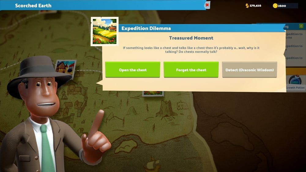 There are decisions to be made on these new Fantasy Finds expeditions, some of which will tickle fans of the genre. Very early on I came across a talking chest, and due to my extensive time in both D&D and Dark Souls I gave it a wide berth. There was also an option to check it out using a Draconic Wisdom check that I hadn’t unlocked yet, but you will gain these perks as you progress.