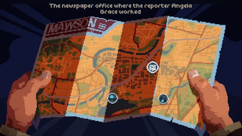 After the opening sequence of Chapter 2, which introduces Detective Hara and ends with Mick’s escape from being apprehended, he winds up outside the offices of the Mawson Herald. Go inside and speak with the receptionist about Grace, the reporter.