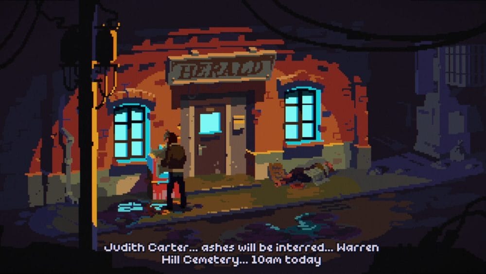 Use the money on the newspaper box to learn where Mick’s mum’s funeral is taking place, unlocking your next location. Leave the area and head to the cemetery.