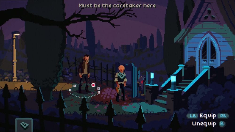 Equip the brick and use it on the caretaker. Mick contemplates it, but doesn’t follow through with his intrusive thoughts.