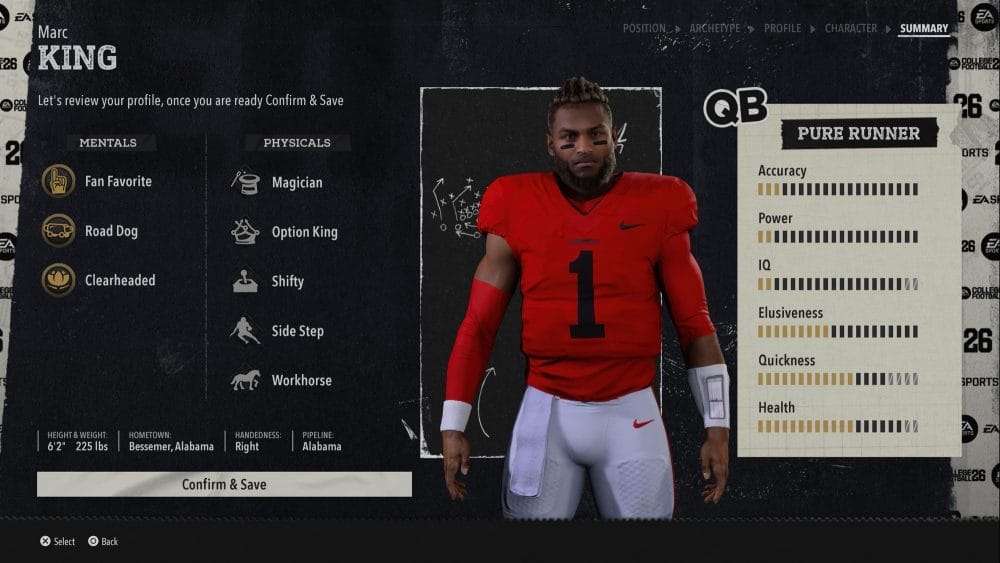 CFB 26 finally takes us back to high school with their "Road to Glory" Mode. Starting with RTG you must first decide if you want to be a 5-star athlete or try to earn your offers as a 2-star player. Once that is complete, now you choose your position, you decide from either a QB, RB, WR, MIKE or CB and then choose the archetype for the player you want to be. Each archetype comes with its own advantages and disadvantages.