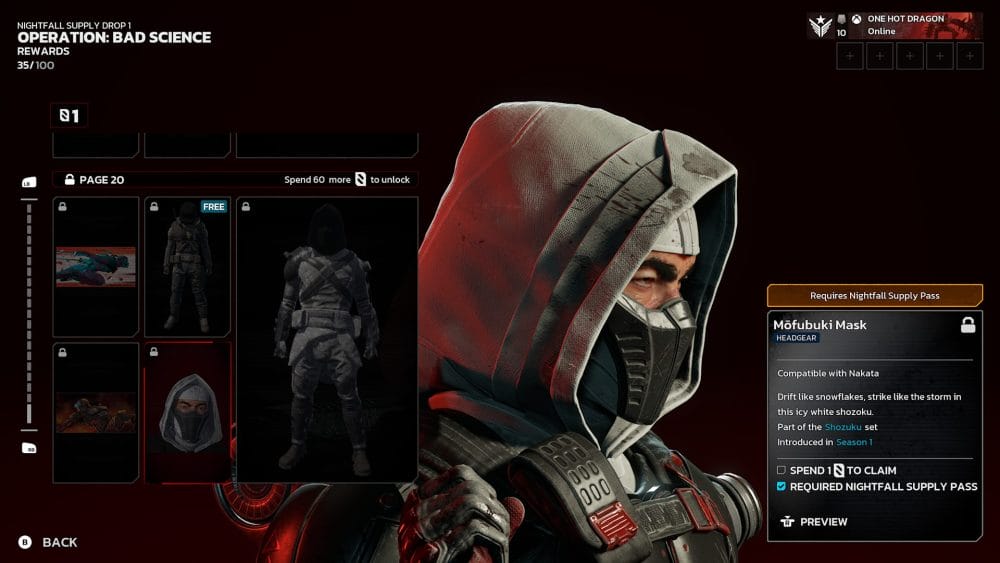 The issue with the battle pass, is that the items in season 1 are nothing to write home about. The big award for reaching the end of the season is a white ninja costume, which is cool, but its probably the only cool thing on there.