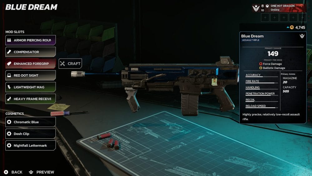 Each weapon has the option to add multiple attachments such as muzzles, mags, and sights. You can also swap out the frames and types of bullets. That’s where you get into the big changes. You can add elemental damage to your weapon with different bullets or you can change the way your gun fires by changing the frame.