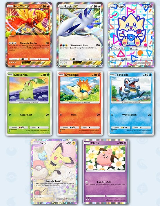 Pokémon Gold and Silver released in 1999 (I know), and are in the top 5 best selling Pokémon games of all time. They introduced a lot of new mechanics, including Shiny Pokémon, Baby Pokémon and the Steel and Dark types. We’ve already seen a few of the 100 gen 2 Pokémon in TGC Pocket including Espeon and Umbreon in the previous Eevee Grove Expansion – although now they finally have ex variants!
