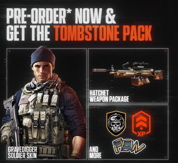 Many were concerned if we would see Battlefield follow the trend of $80 dollar price tags. Well, you can exhale now because Battlefield 6 will be priced at the standard $70 dollars. If you pre-order you will receive bonuses from the Tombstone Pack as seen below.