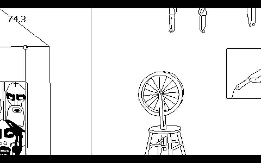 Find God _ From the table where you free the fly downstairs, head left to find a computer. Complete a few commands with the gamepad for this one: