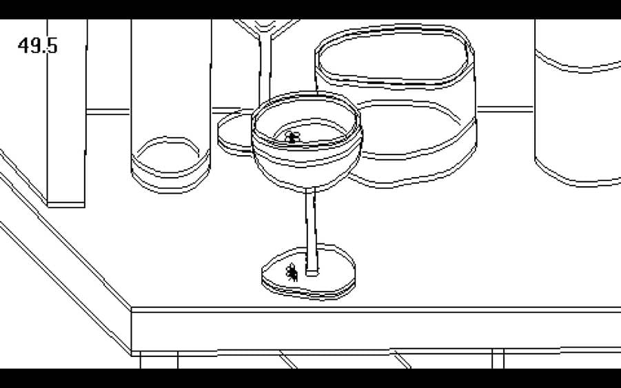 Get drunk _ In the second room, you’ll see a glass of wine. Instead of going into the glass, there’s a drop of wine on the base. Land in the drop to lap it up, get drunk and send your poor fly’s vision slightly obscured for a few seconds: