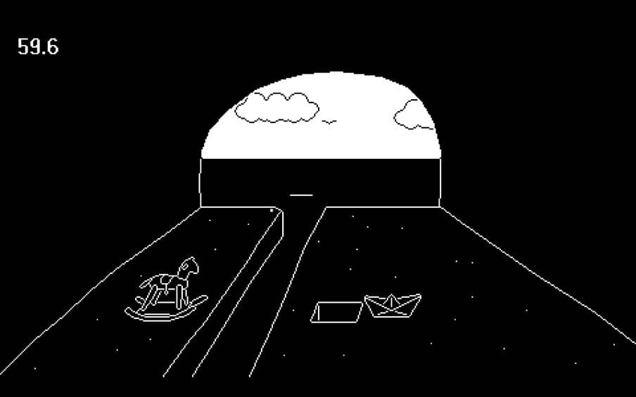 Sail the sea _ next to the rocking horse is an origami boat. Push it down the hole from whence you came: