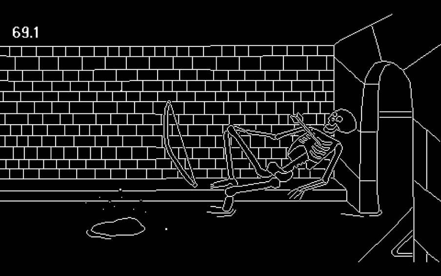 Don’t die alone _ This needs to be your last objective on a full run. Upstairs, head right and through a keyhole to a dark room. Flick on the switch to the right to turn the light on. Then fly into the bulb to fry yourself and add your body to a pile of other misfortunate flies below: